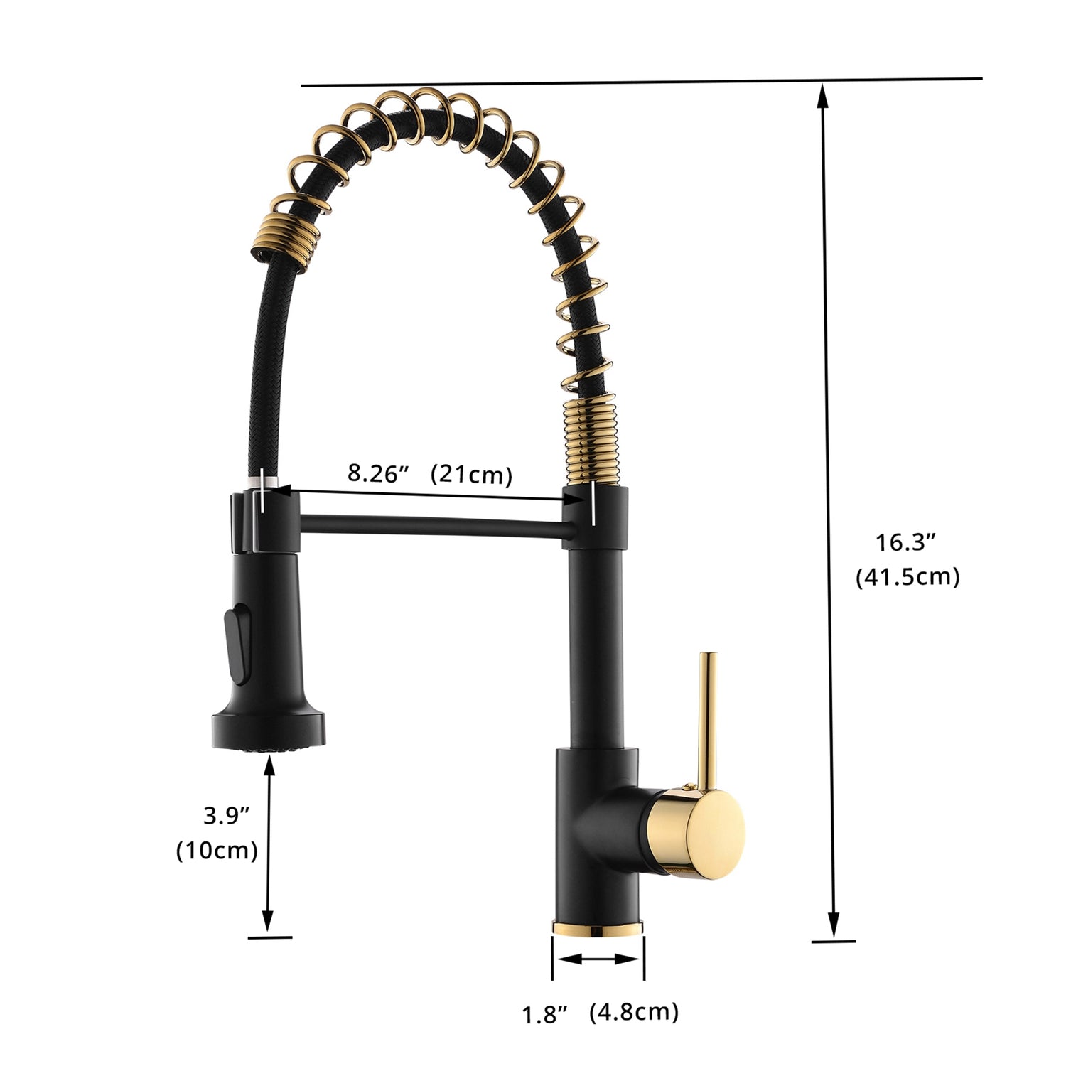 Single Handle Kitchen Faucet with Pull Down Sprayer Dual Function Spray head in Black Titanium Gold