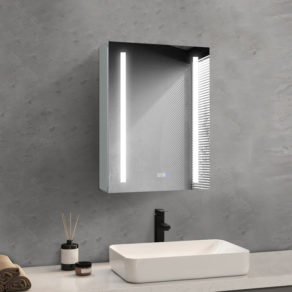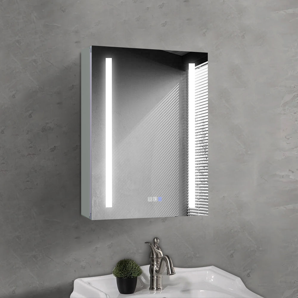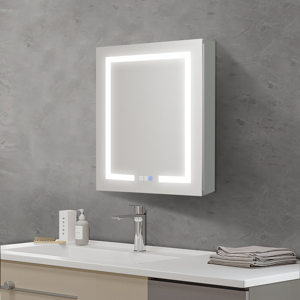 20" W x 26" H Rectangular Frameless Recessed/Surface Mount Right Medicine Cabinet with Mirror and LED