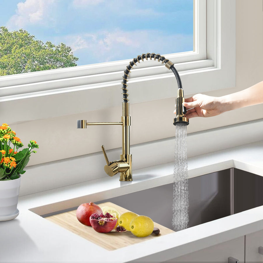 Single Handle Pull Down Kitchen Faucet with Sprayer Advanced Spray and Pot Filler in Gold