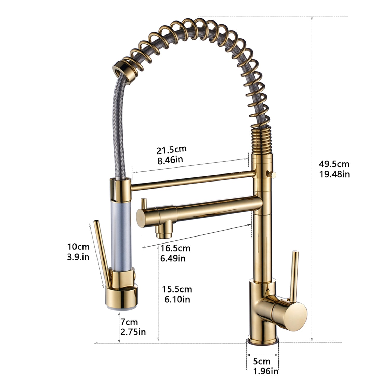 Experience the epitome of convenience with our Single Handle Pull-Down Kitchen Faucet. The high-arc 360-degree swivel spout provides full-range washing access, and the sprayer head retracts back to the spout after each use. Equipped with a pot filler, this faucet is designed for versatile use, allowing you to complete various kitchen tasks effortlessly. The advanced spray mode can be activated by pressing the handle of the spray part, adding efficiency to your kitchen routine. Ideal for both farmhouse and contemporary kitchen sink setups, this faucet combines style and functionality
