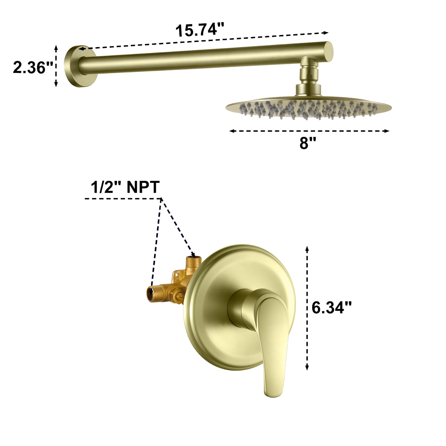1-Spray Patterns 8 in. Round Wall Mount Rain Shower Head Built-In Shower System with Single Handle in Modern Design
