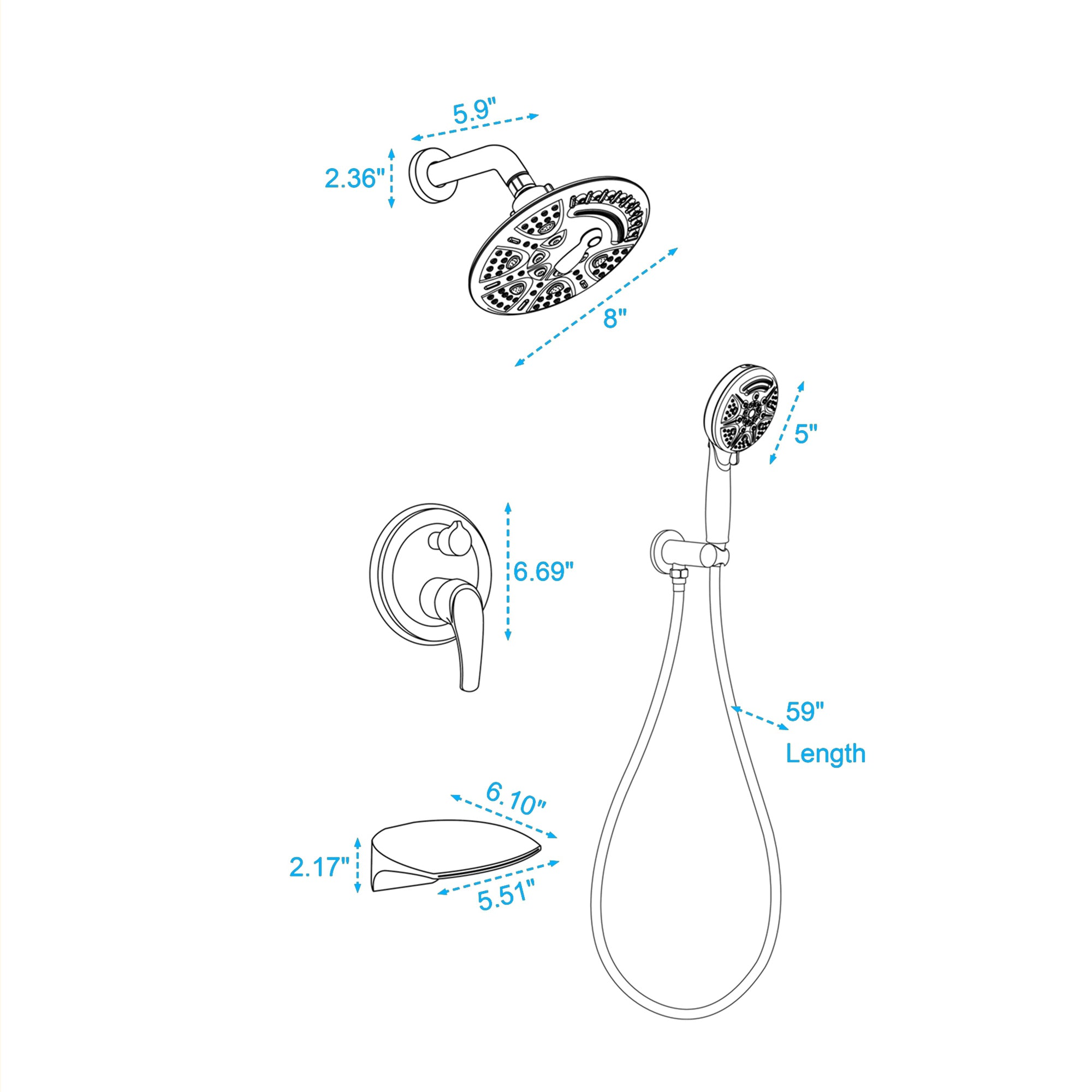 2-Handle 9-Spray Patterns Shower Faucet and Handheld Combo with 8" Round Shower Head Rainfall Shower System