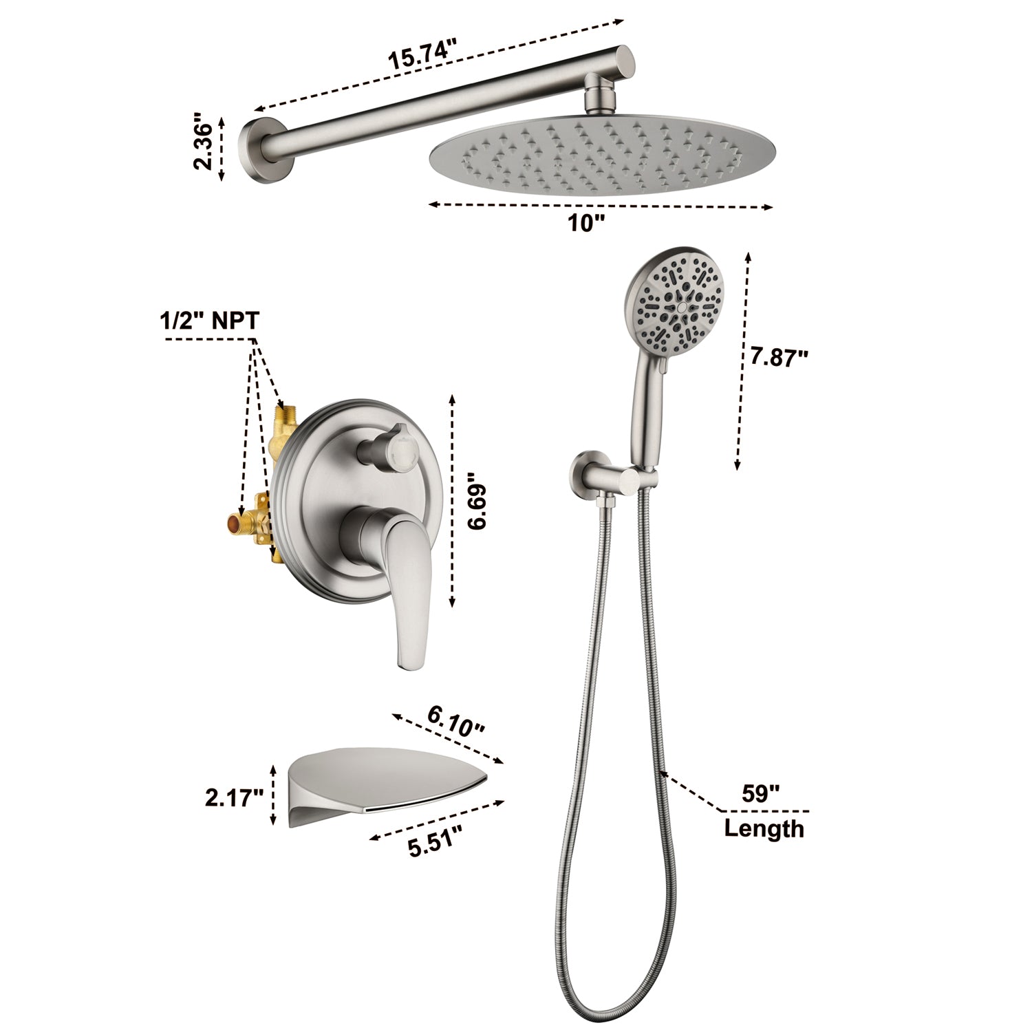 - Easy Installation: Designed with convenience in mind, our shower system features standard US NPT 1/2 thread compatibility for easy installation. Clear instructions are included to guide you through the process seamlessly.