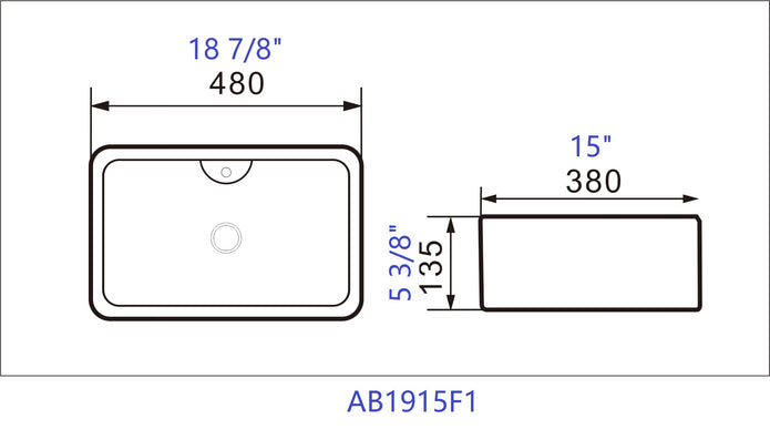 18.88"L x 15" W White Ceramic Rectangular Vessel Bathroom Sink